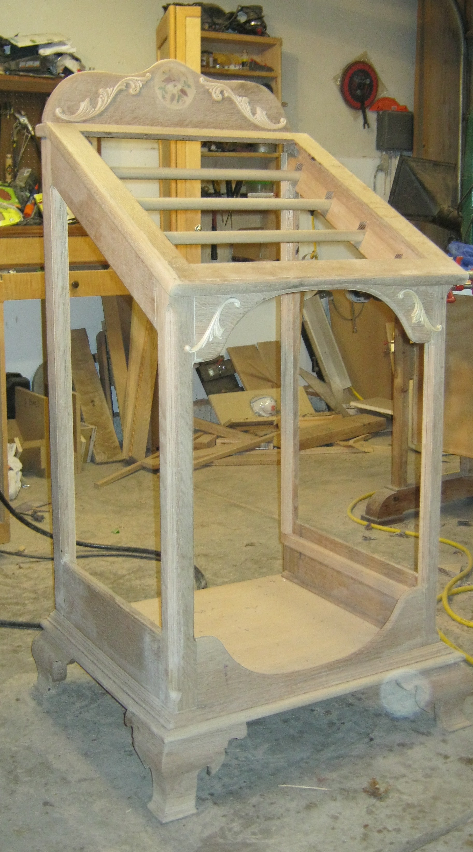 I found a bit of time today to work on the quilt case. The lid is finished and a lot of finish sanding is done. I am leaving the back off until the glass is installed.  Staining and clear coats are this week. Hopefully glass installation next weekend.