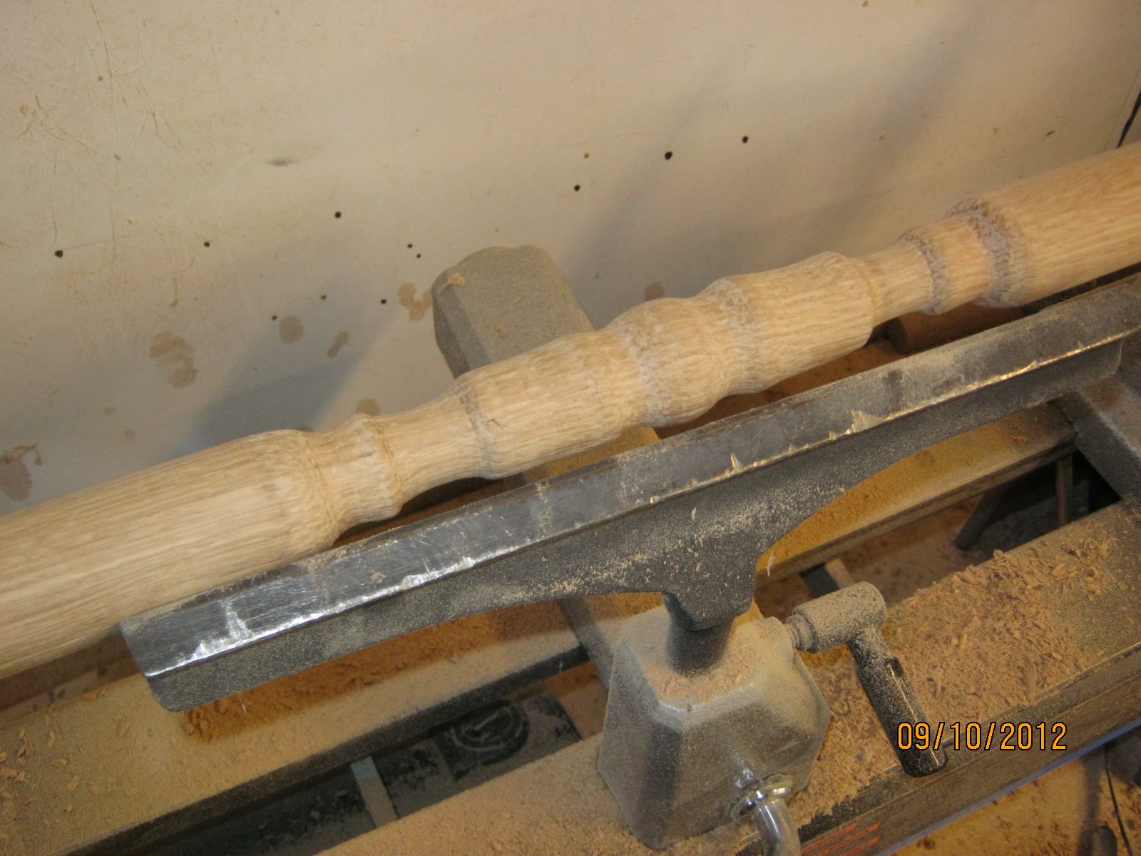 It will have wheels and hangers that hang on rails attached to the bookcase when finished. I had a chance to play with my lathe again turning the top rung.