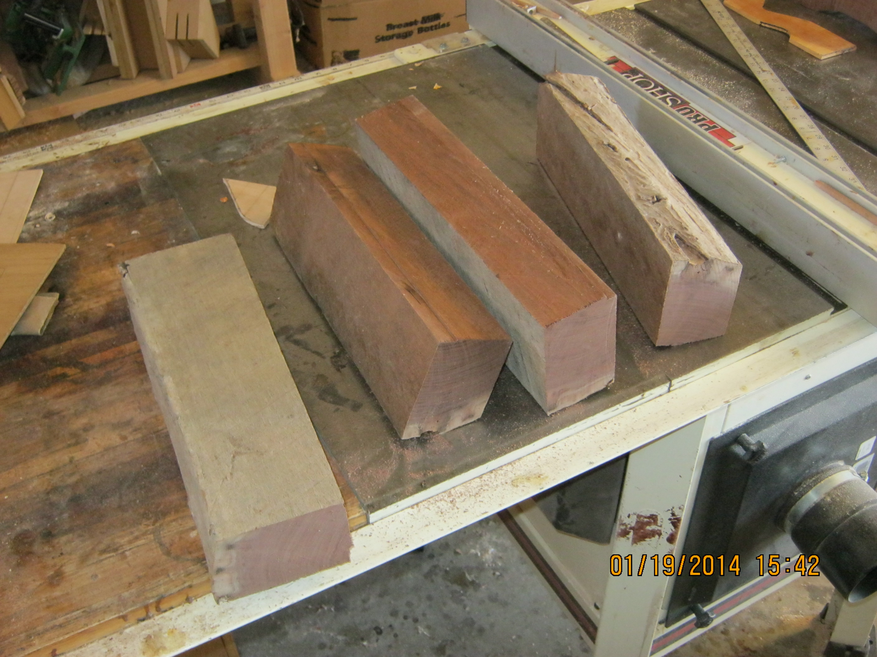Next I will size the lumber.I need 4 pieces 14 inches long and 3″ by 3″ to have enough meat to cut the leg shape. As you can see below , the raw timber yielded some very pretty walnut. I still have about 30 inches left for another project. I also know this lumber has air dried for at least 3 years.